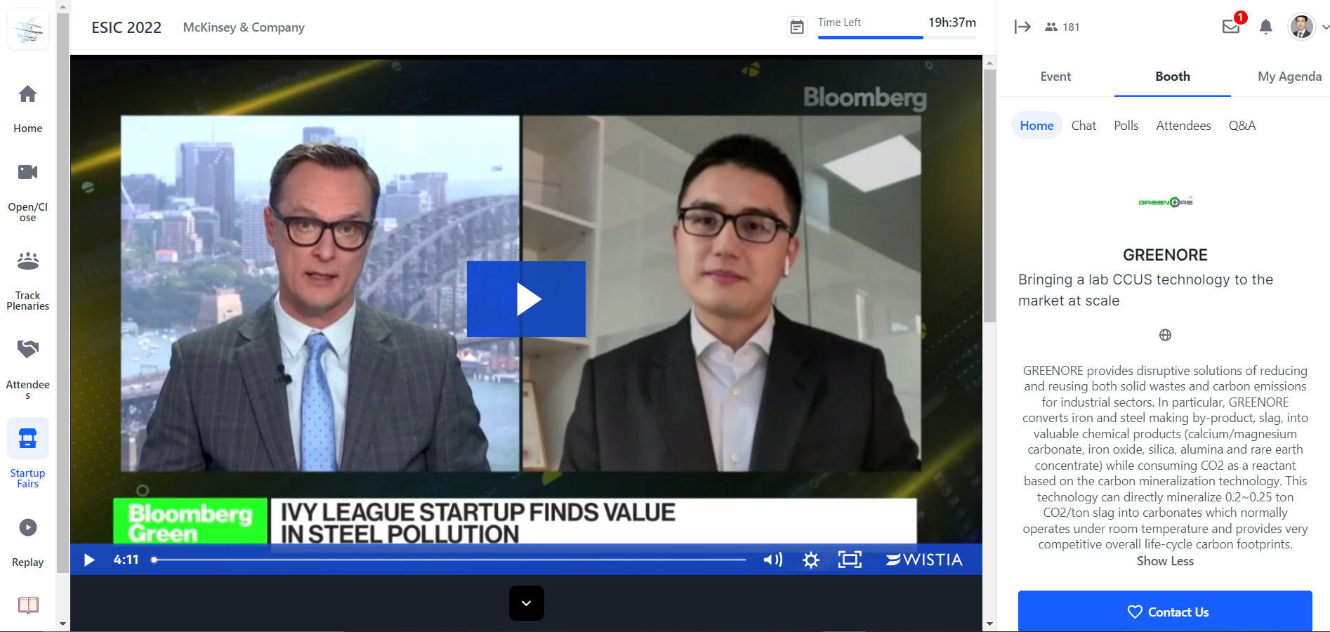 美国时间6月21日,瀜矿受邀参加全球最大的跨行业线上虚拟展会之一的麦肯锡早期投资者会议(以下简称ESIC),展示绿色低碳领域的科技创新实力,与全球的意向客户加强对话交流,促进合作共赢。