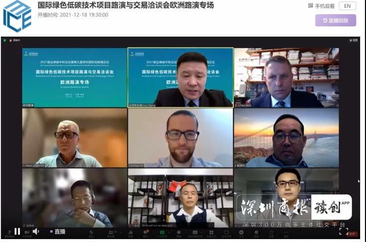 12月18日晚,作为2021年碳达峰碳中和论坛暨第九届深圳国际低碳城论坛的重要环节——国际绿色低碳技术项目路演与交易洽谈会(以下简称“洽谈会”)欧洲路演专场通过视频方式举行。